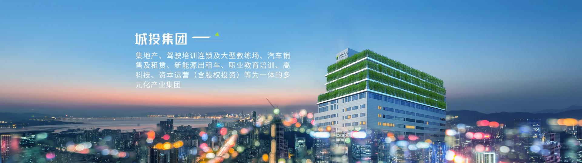 城投集團堅持“愛黨愛國、孝敬父母”的核心企業(yè)文化,主要業(yè)務為高科技、互聯(lián)網、基金投資、地產開發(fā)、職業(yè)教育培訓、駕駛培訓、汽車銷售及租賃、出租車運營等。